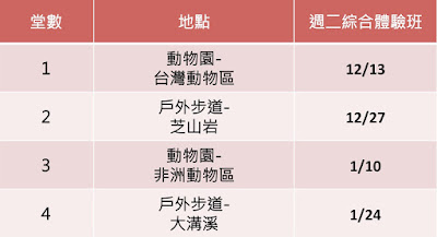 綜合體驗班(步道+動物園)隔週上課