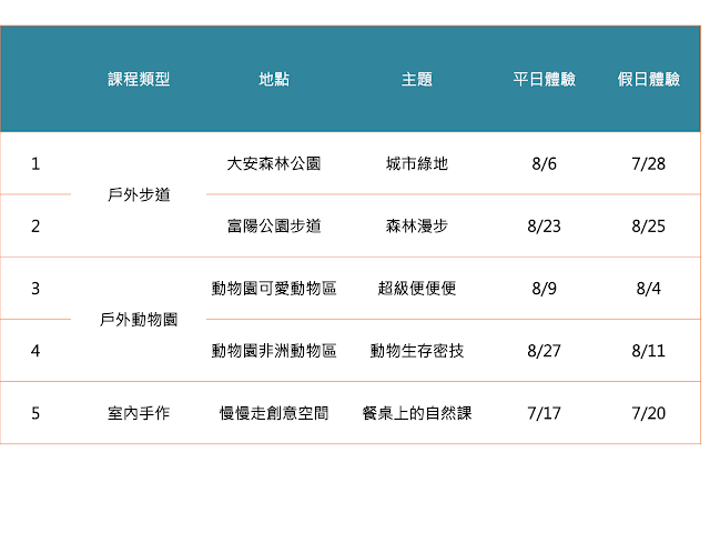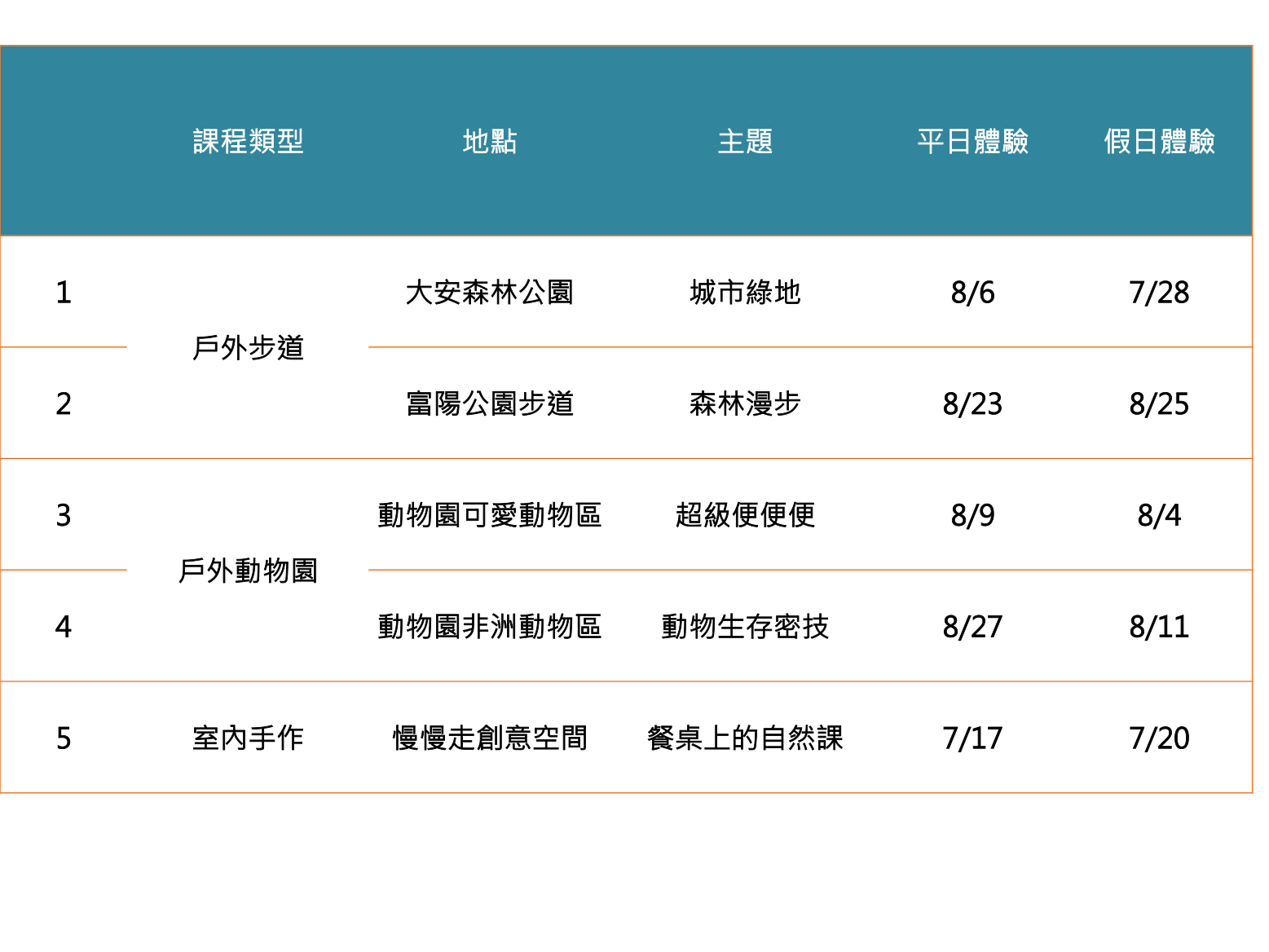 夏日體驗課程有動物園班與戶外步道班與室內手作