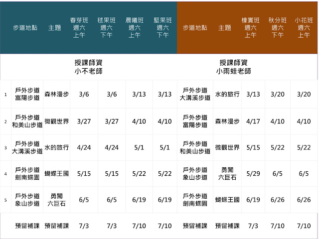 備註:預留補課是指當原訂課程因雨停課,保留整班可補課的日期,請家長務必欲先留下。