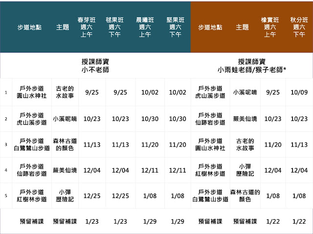 備註:預留補課是指當原訂課程因雨停課,保留整班可補課的日期,請家長務必欲先留下。