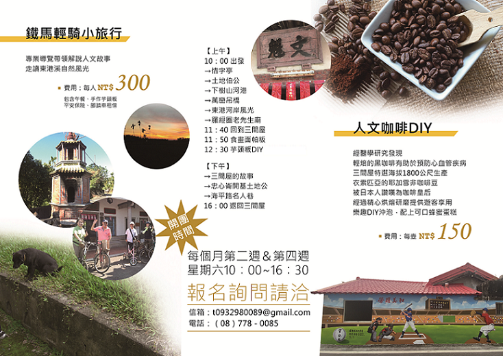 ▍費用:每人300元(包含午餐、手作芋頭粄、平安保險、專業導覽、腳踏車租借)。