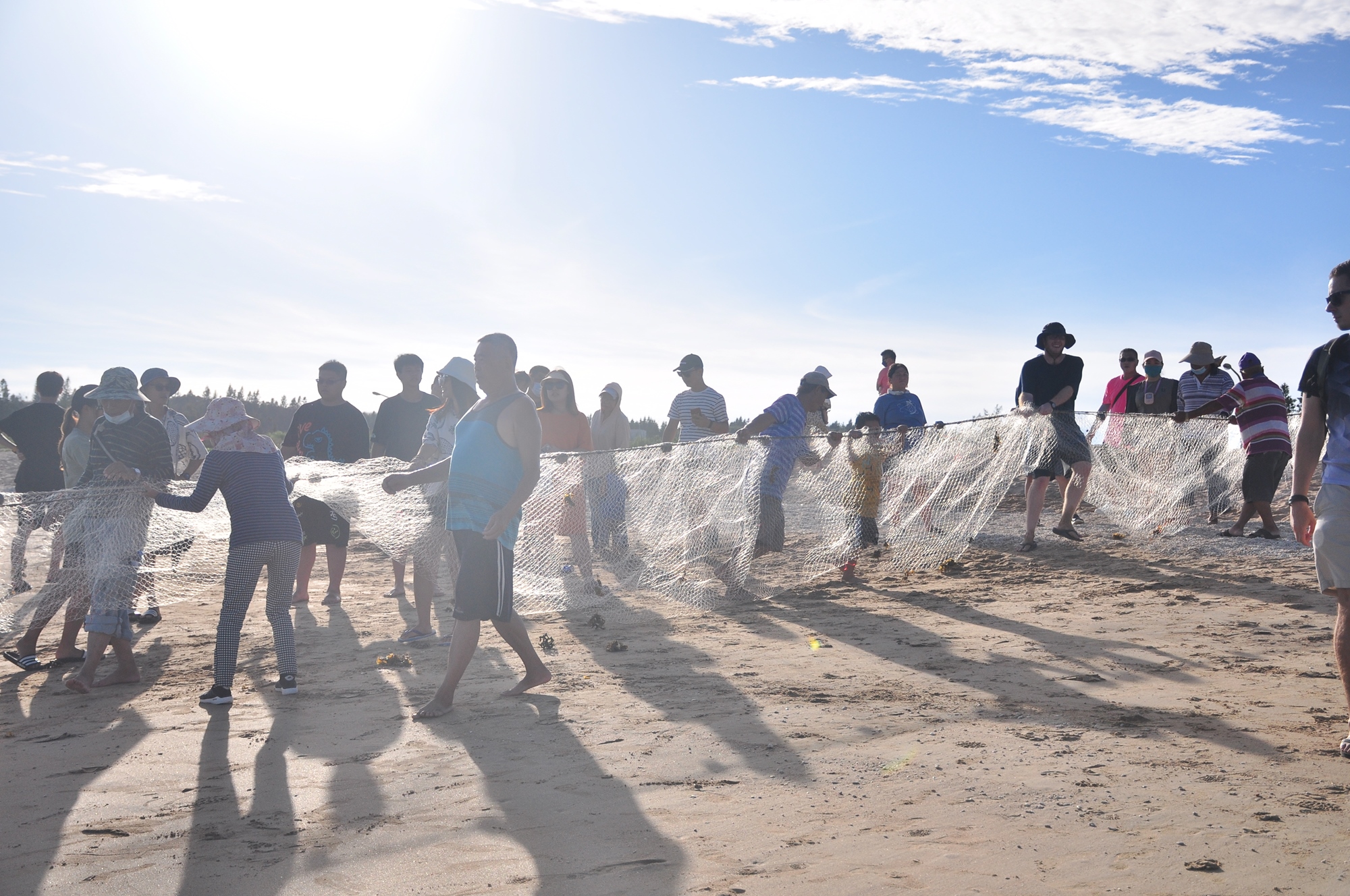 牽罟是一種需要全民總動員的捕魚方式,集結了先人的智慧,會將魚網撒入海中,再請遊客們接力將漁網拉上岸。