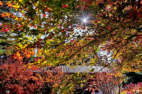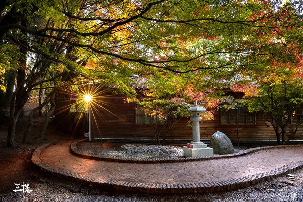 拍攝松盧楓紅晨光之美(日出06:17)。