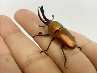繽紛的七彩顏色拓印在鍬形蟲身上