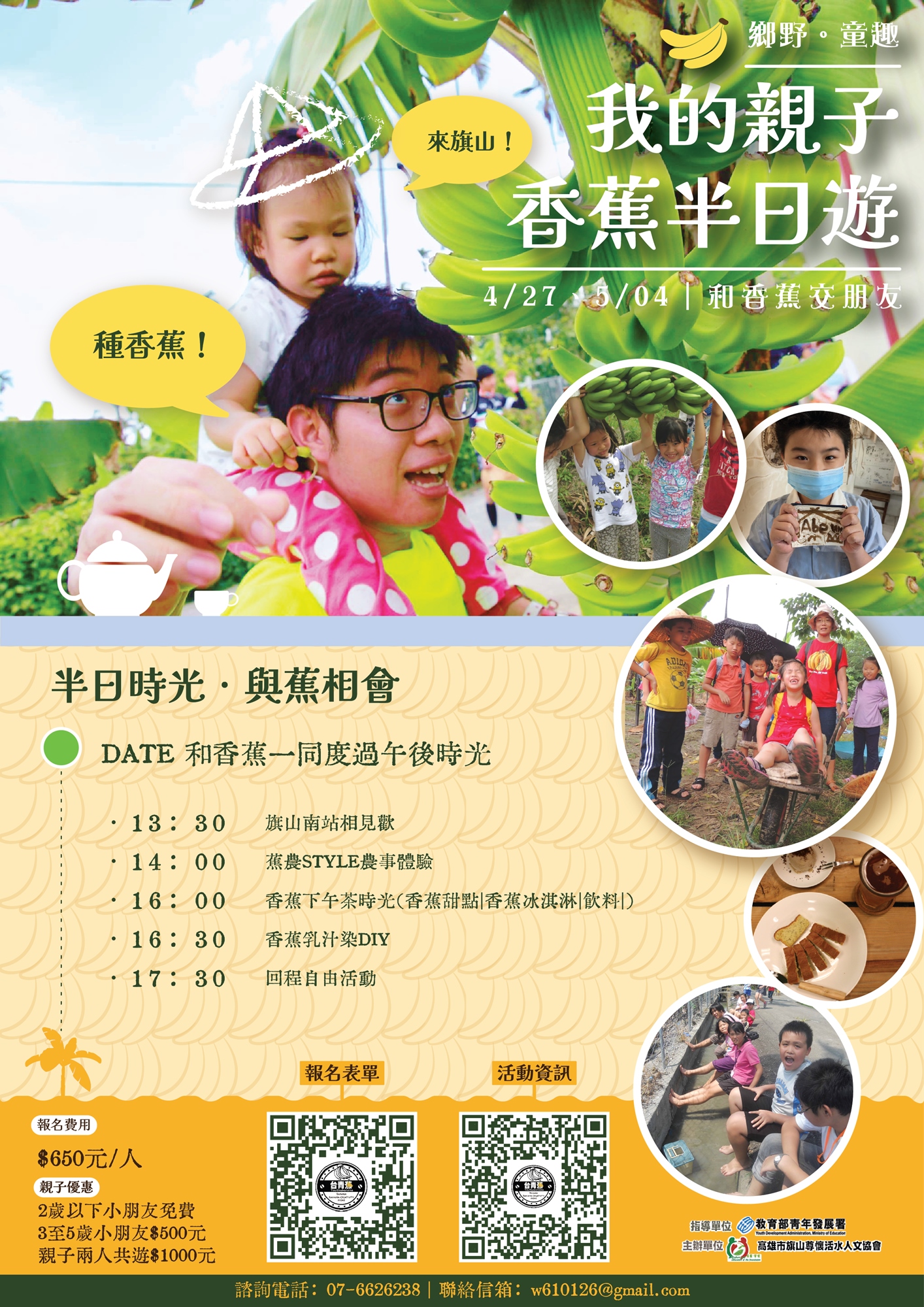 《5月4日場》(不含香蕉乳汁染DIY)│2歲以下不收費│3-5歲250元│6歲以上400/人
