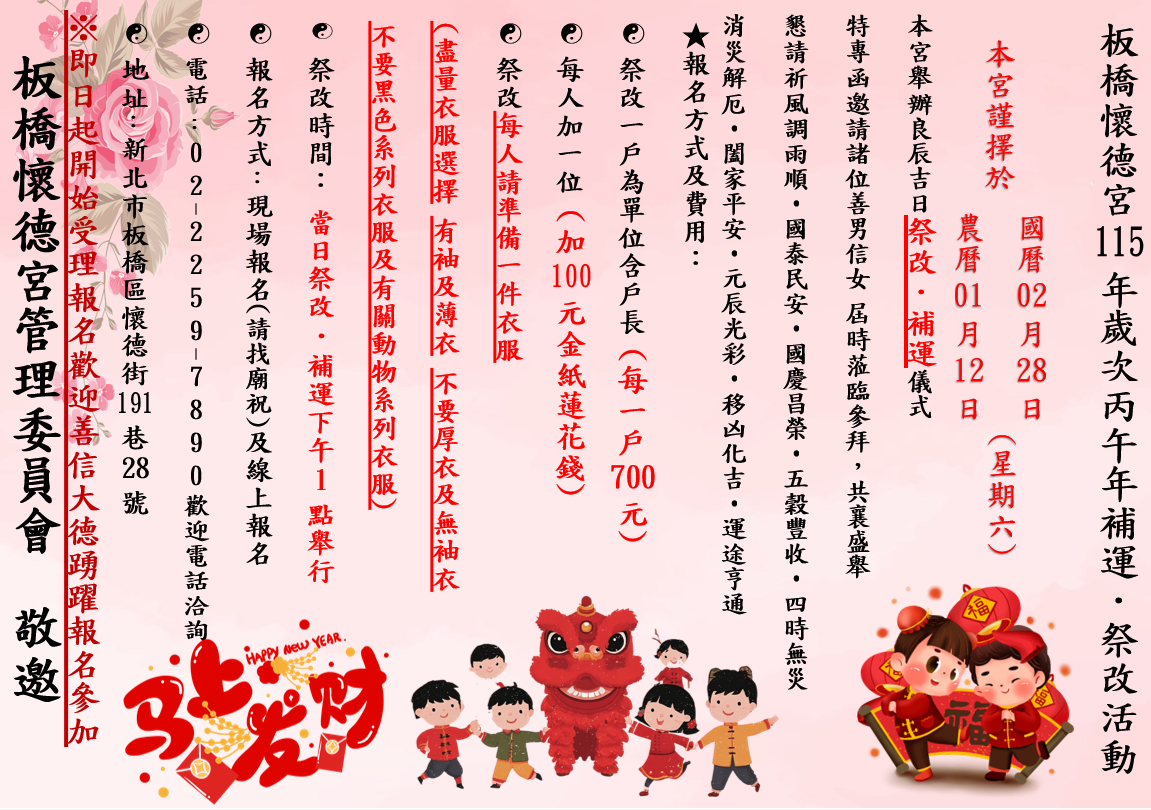 本宮謹擇於 國曆2月28日 農曆1月12日 (星期六)