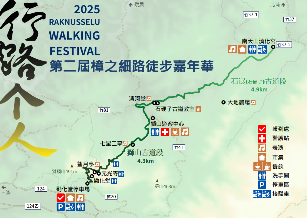 協辦單位:台灣千里步道協會、新竹縣北埔鄉公所、新竹縣峨眉鄉公所、交通部觀光署參山國家風景區管理處、桃園市議會、台三線藝術季學校、萊歐旅行社