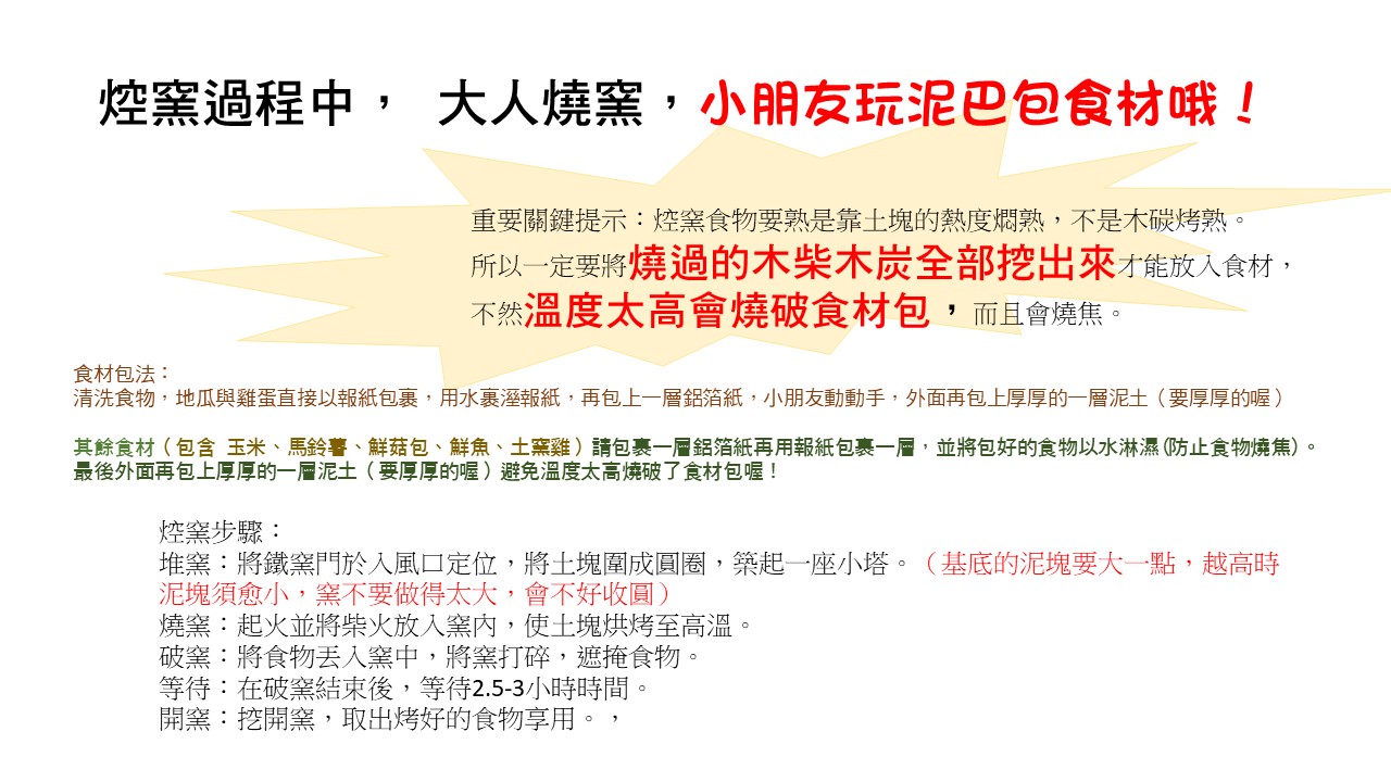 🔸 焢窯體驗|親自動手堆土窯、燒窯、放食材、悶煮、開窯,大人小孩都能玩得開心又吃得滿足!