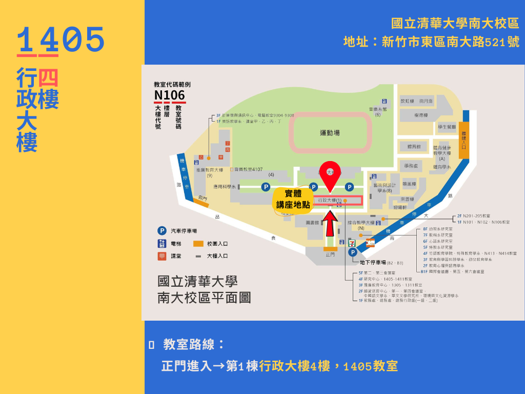 | 講座時間與場次(清華大學南大校區1405教室) |