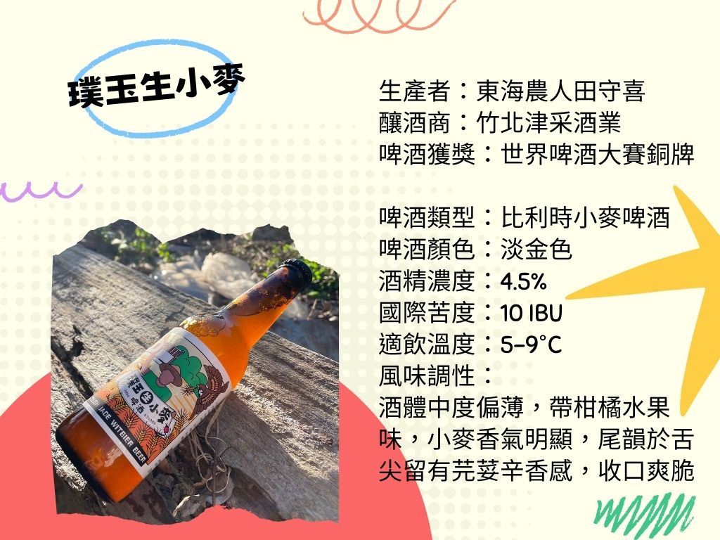 散步啤酒:璞玉生小麥(330ML/瓶),為「津采酒業」選用竹北東海窟小麥精釀