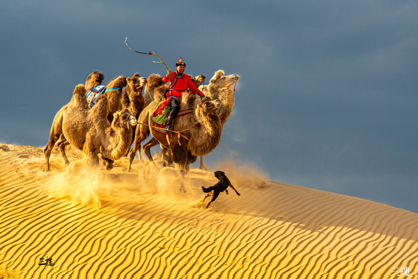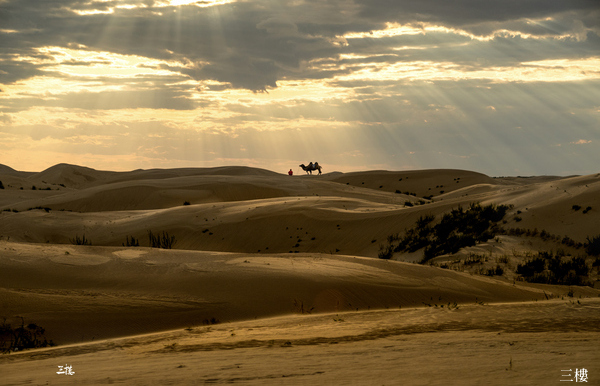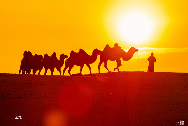 九、沙漠場景:駝隊沖沙、怪柳人像、夕陽駝隊剪影
