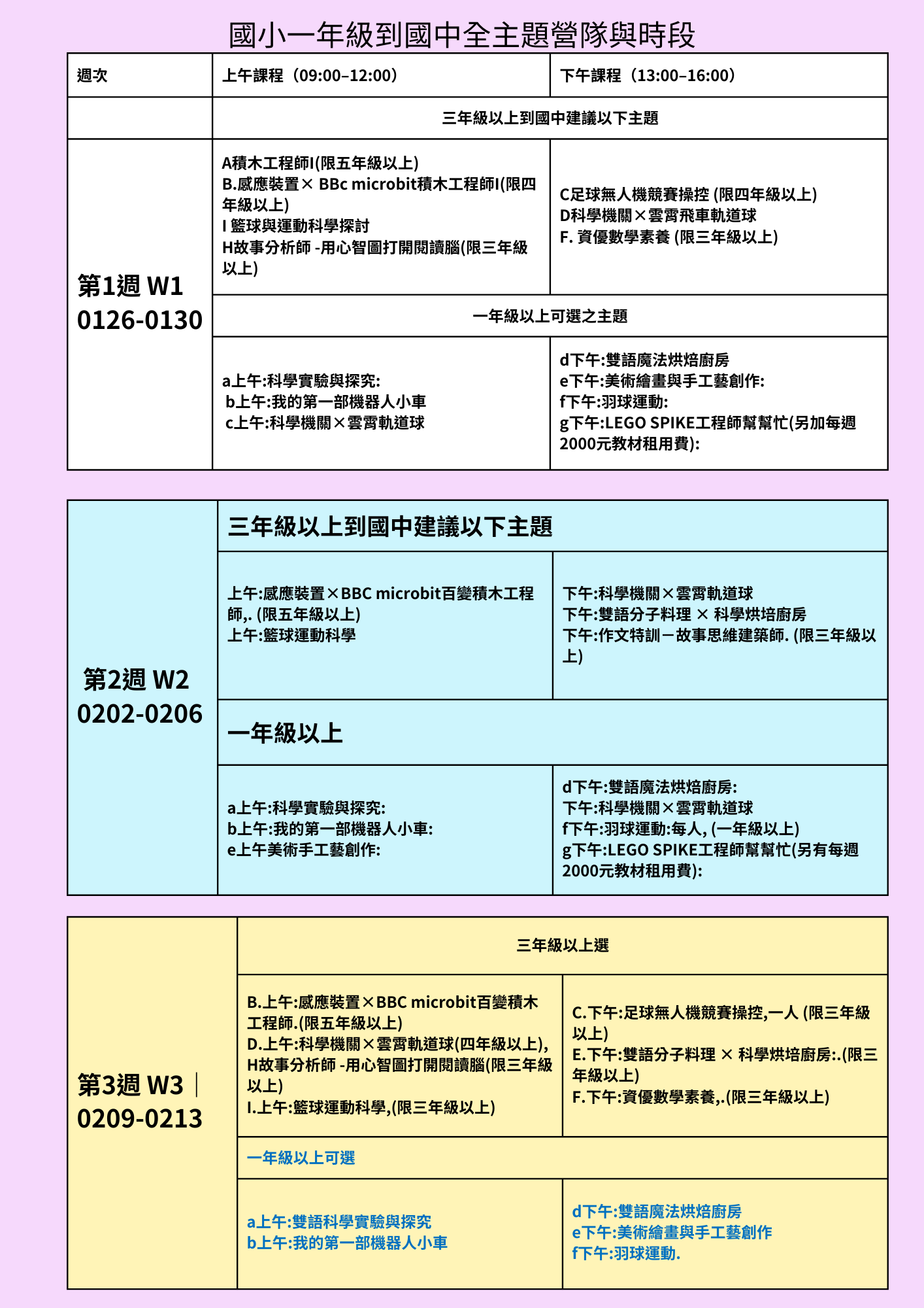 ✅ 3|補課方式(依三梯次彈性安排)本營隊有三梯次,同主題多時段,可彈性調整: