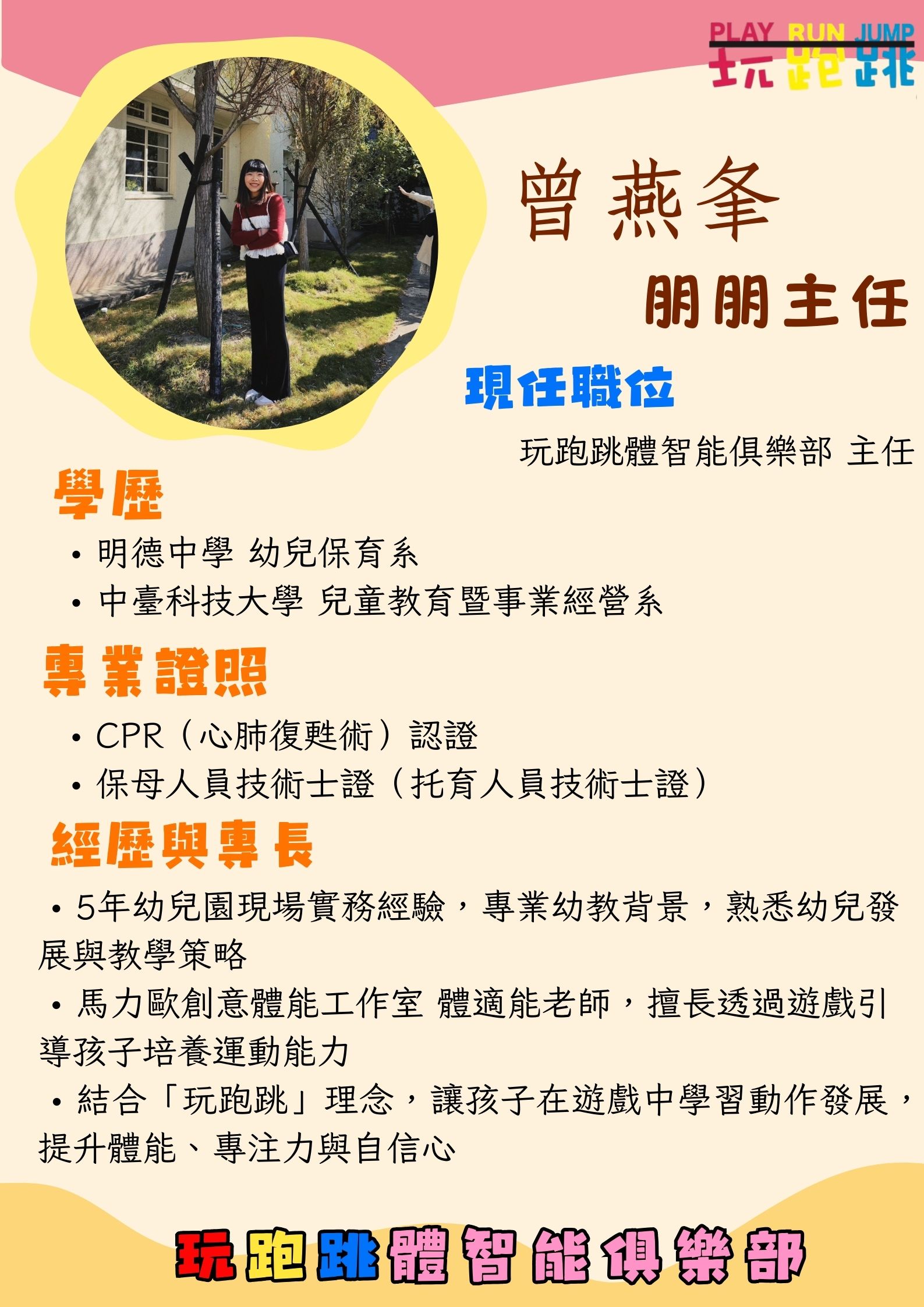 【活動聯絡人】玩跑跳體智能俱樂部 朋朋主任0976-362515