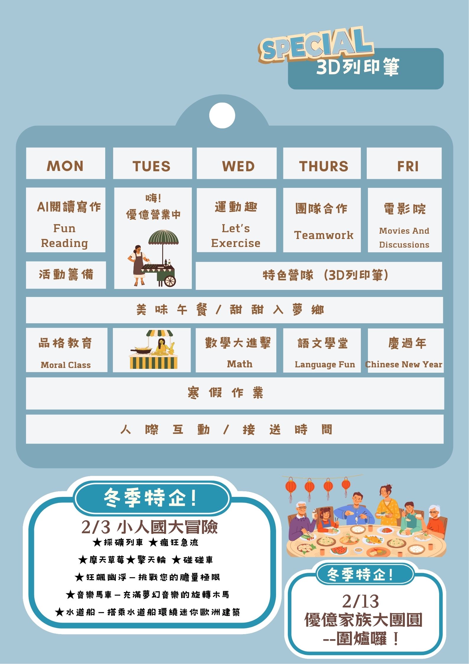 ~包含優億營業中課程/寒假作業/餐點/國語課/數學課/團體合作/運動/電影欣賞