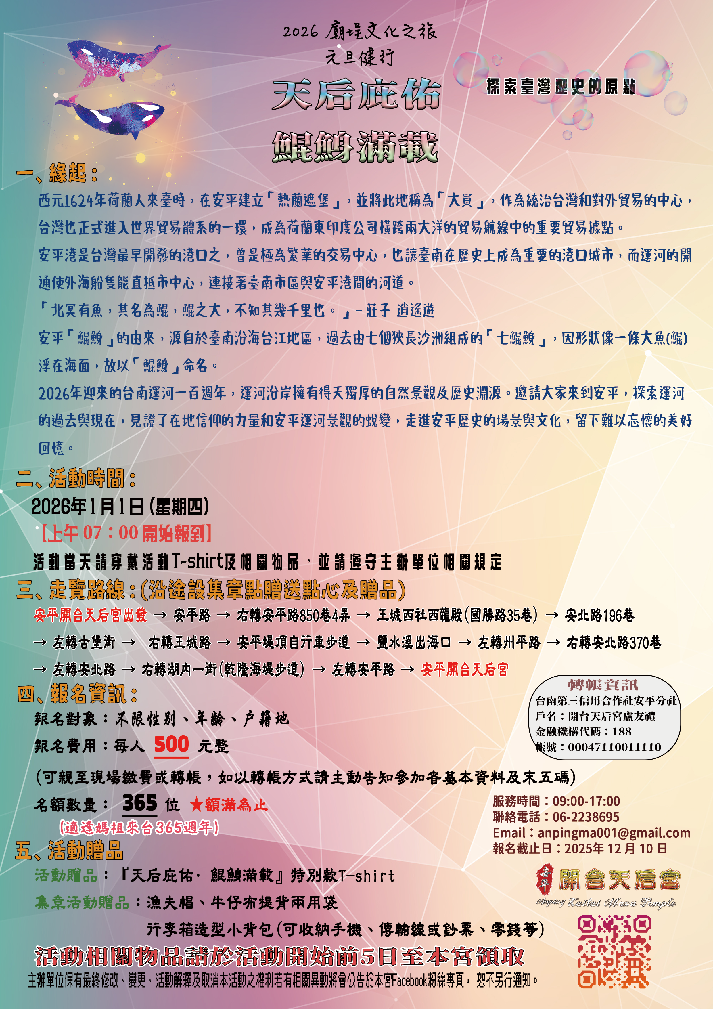 名額限制:365位 ★額滿為止 (適逢媽祖來台365周年)