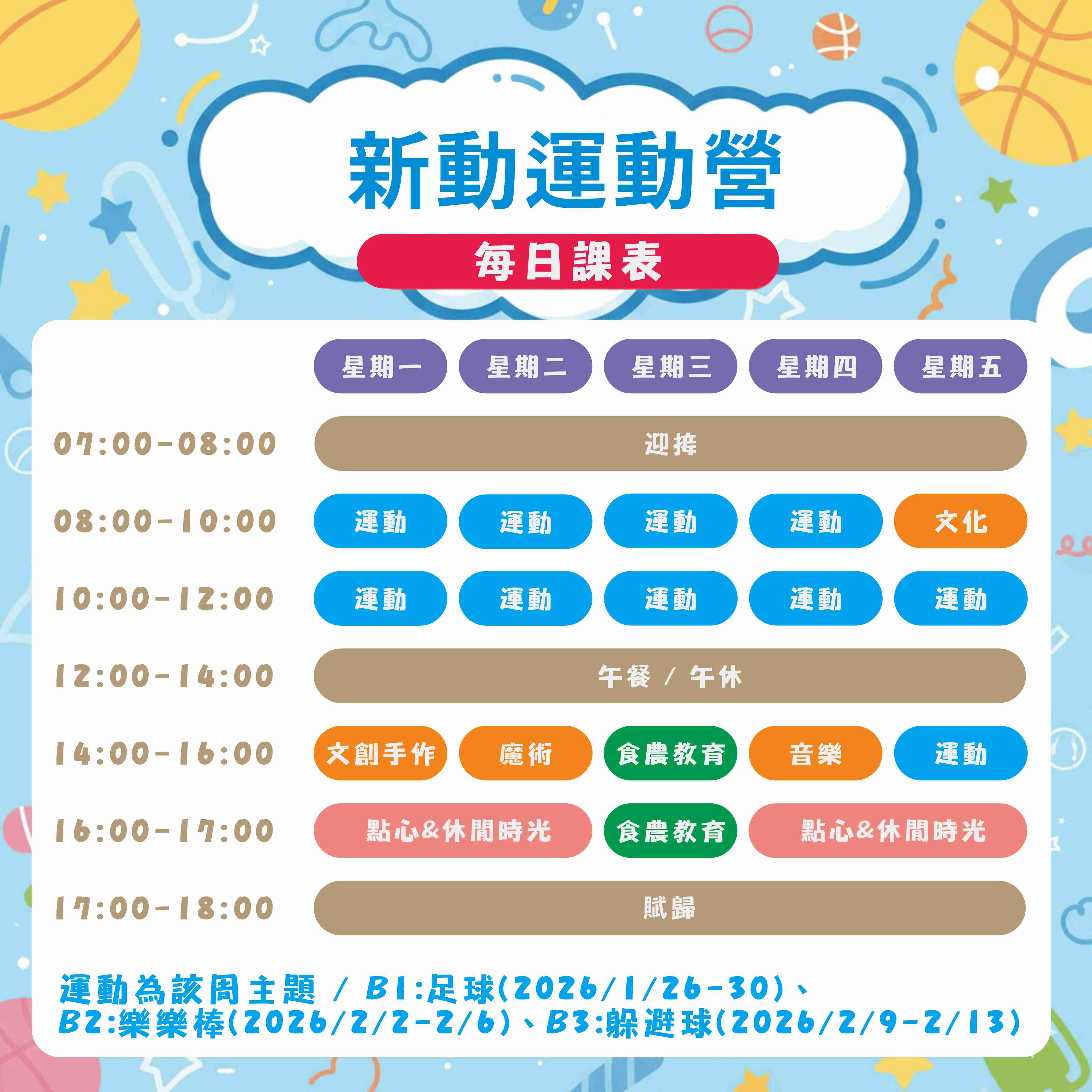 臺南市新市全民運動中心 推出三週熱血營隊!我們不只帶孩子運動放電,更結合多元探索課程,讓他們在玩樂中學習、在揮汗中成長!