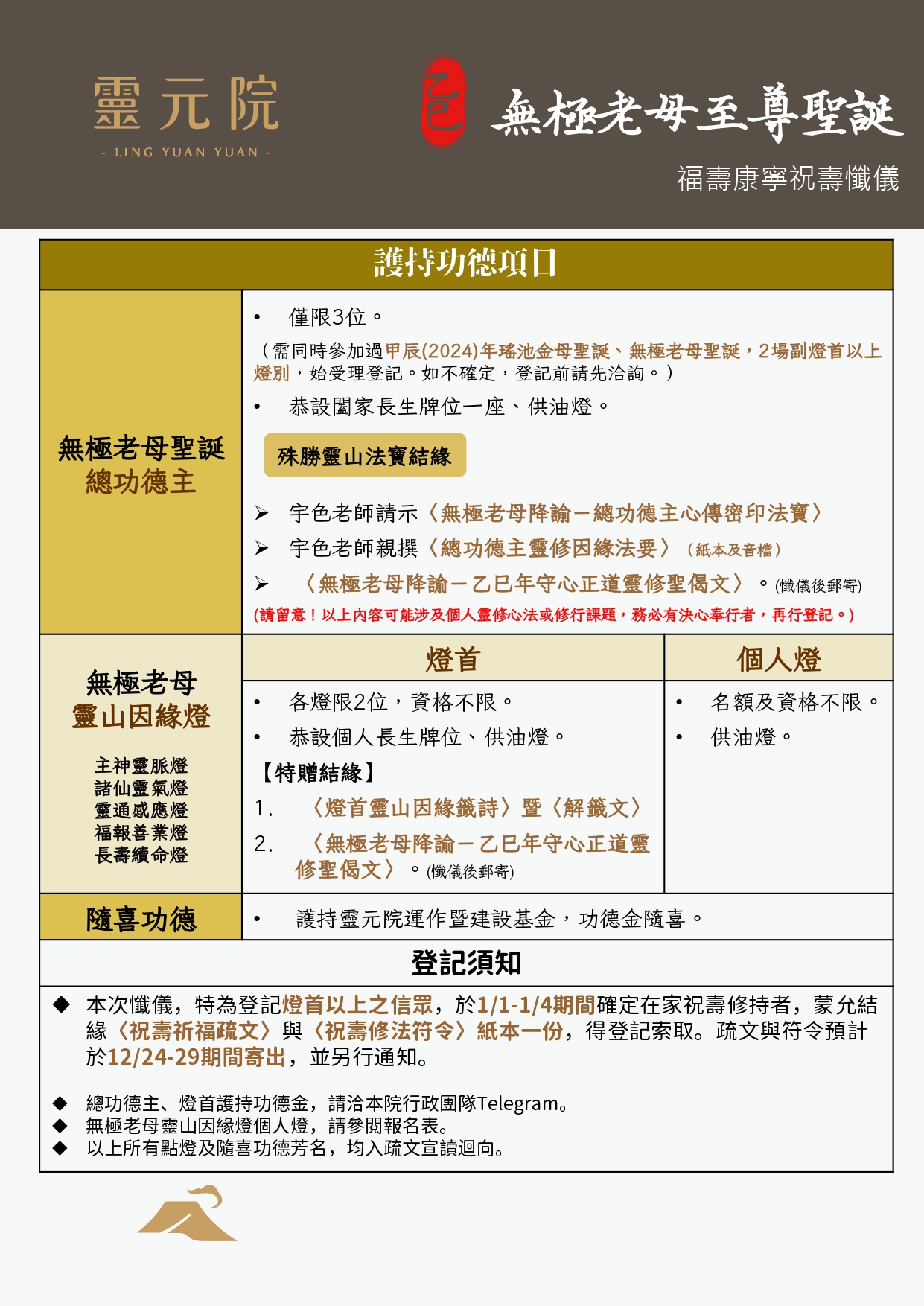 報名 總功德主、燈首、副燈首 請先洽詢本院行政團隊!!!