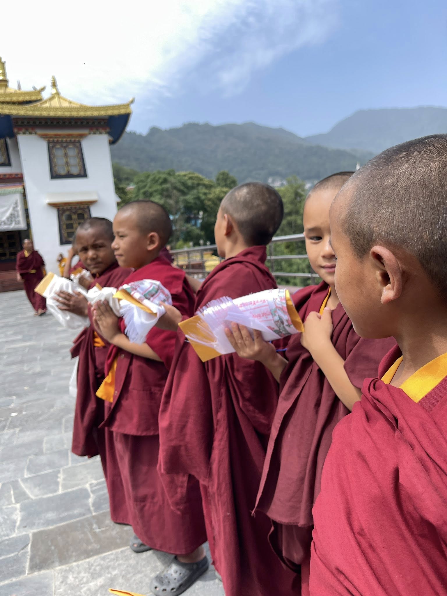 現因日漸進入酷嚴寒冬且今年更冷,資源短缺又物價高漲,生活確屬相當艱苦、不易,極需各地善信大德們慈悲發心贊助供養僧服冬衣等善行。每位僧眾的僧服冬衣包括:紅黃色夾克、片衫、片裙、紅背心、襯衫(Jacket、Shandap、Sen、Tonga、ngolen ),整套之費用為新台幣2,200元,可以分期,也可以隨喜,發心為僧眾至為重要。