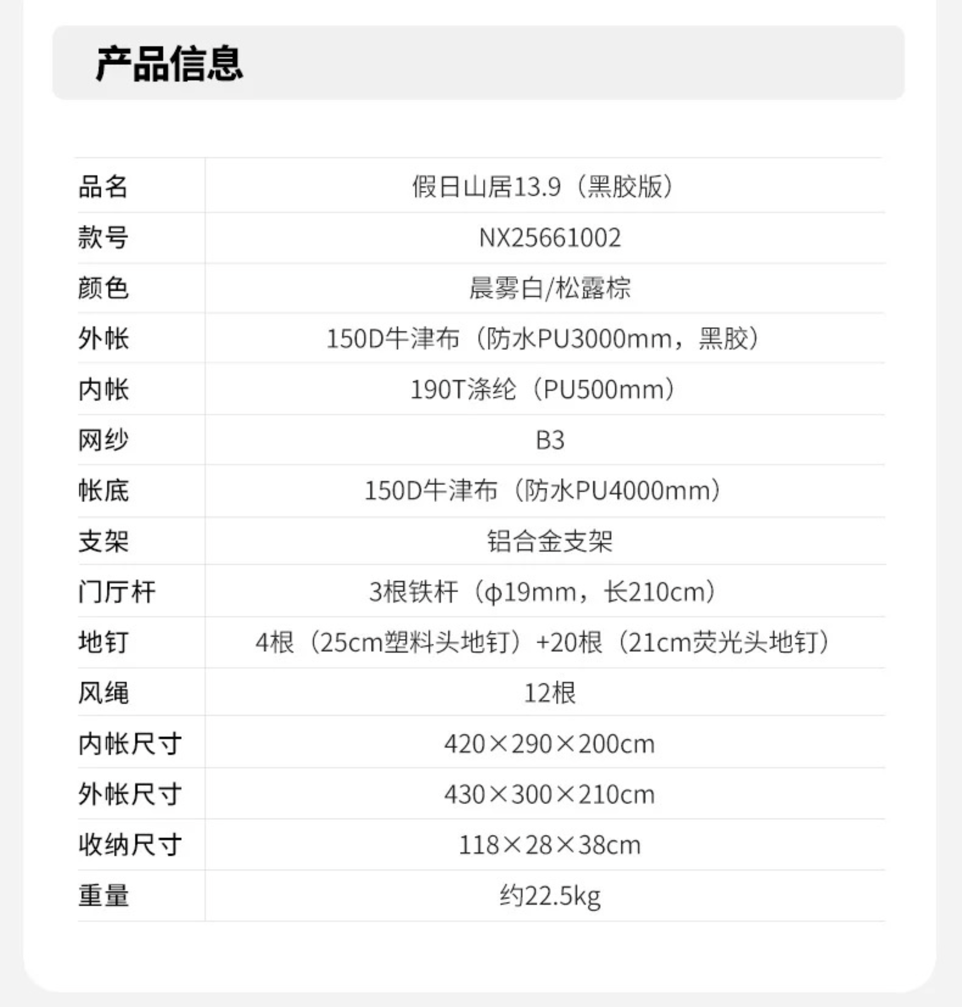 商品名稱:牧高笛 假日山居13.9黑膠 款帳(因車縫手工難免些微差異以實物為準)
