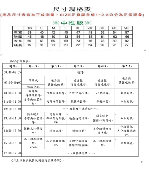 5.活動期間請學員注意安全,並遵守老師、教練的指導暨禁止攜帶貴重物品及危險品