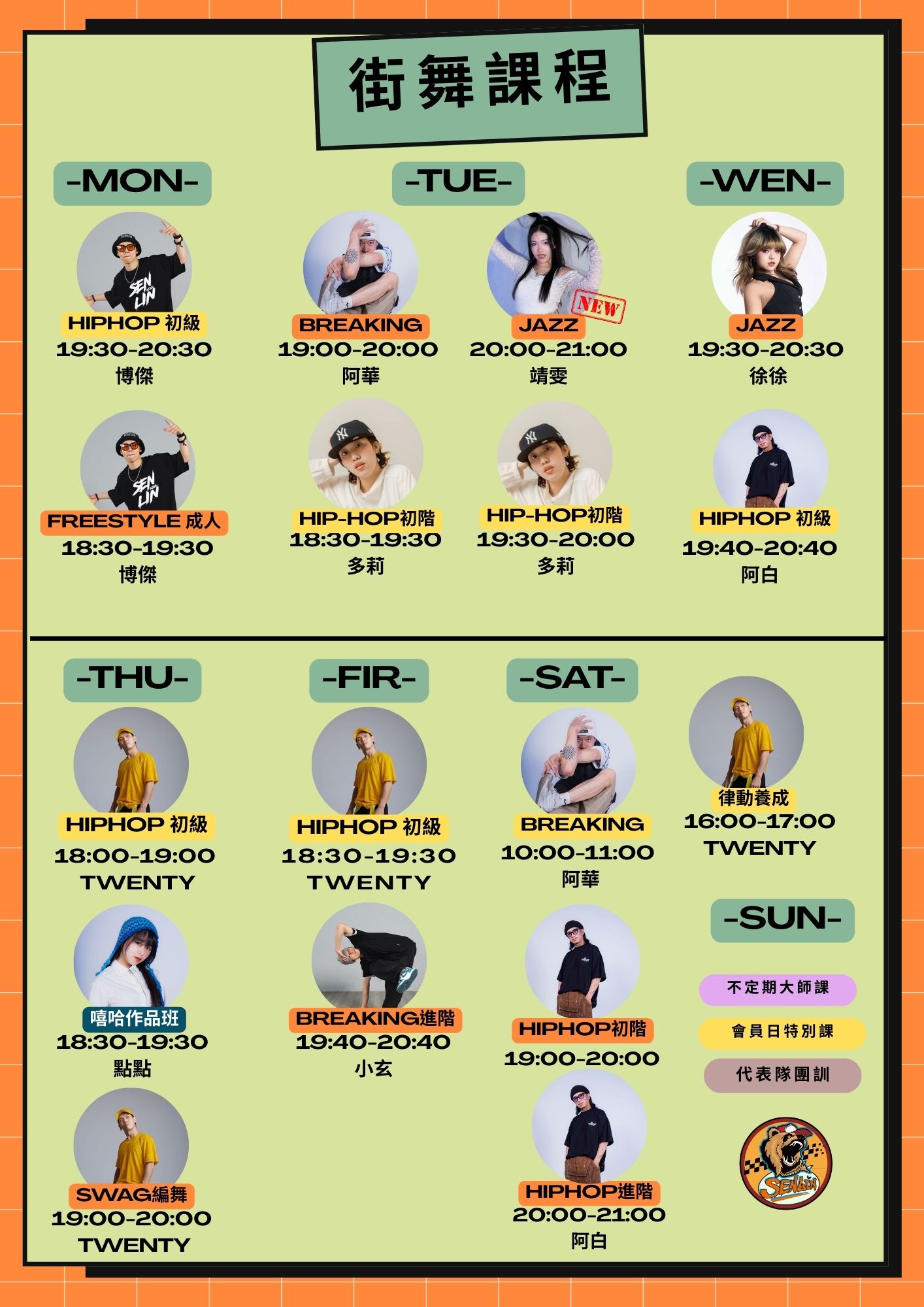 • 19:30–20:30|HipHop 入門|7–15歲|多莉老師(原時段19:00更換時間)