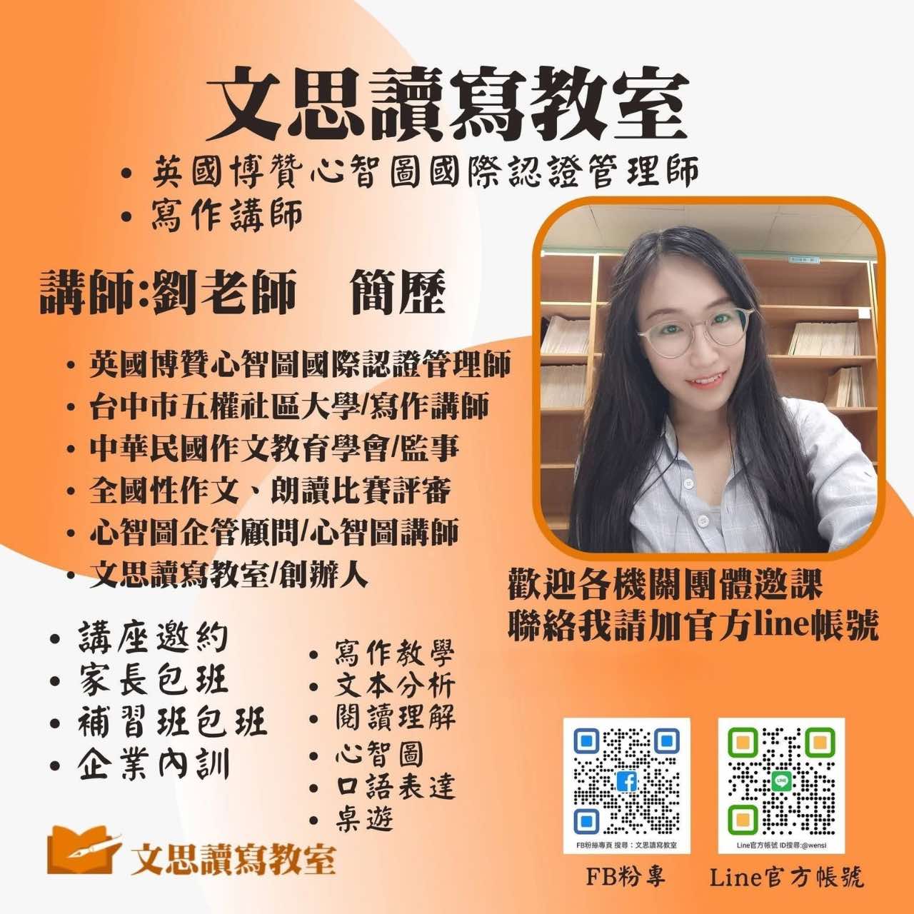 或文思讀寫教室(新光教室)即可找到我喔!