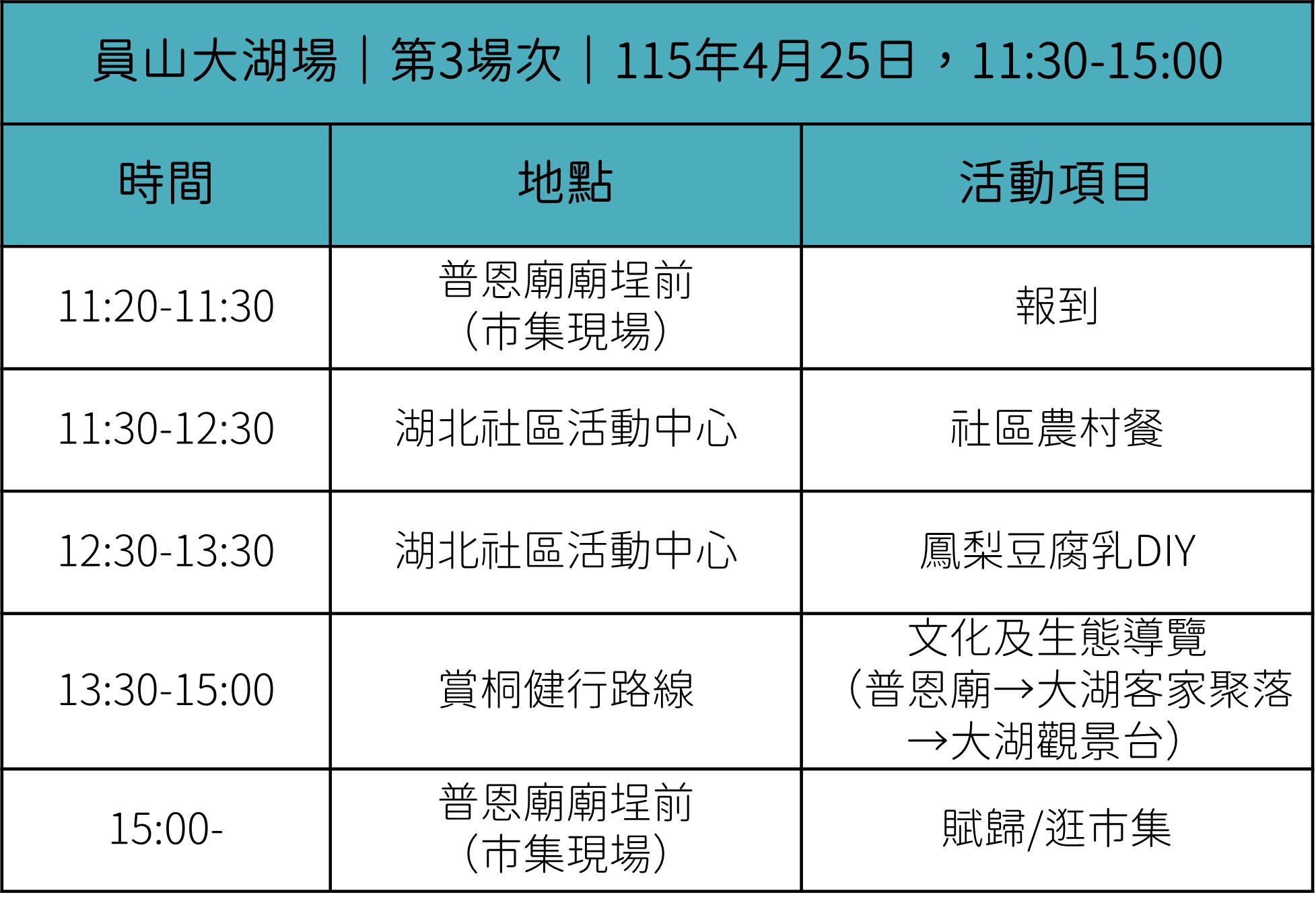 員山大湖普恩廟、大湖客家聚落、大湖觀景台、湖北社區活動中心。