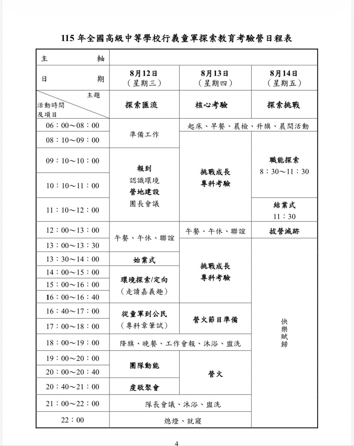 115年全國高級中等學校行義童軍探索考驗營實施計畫